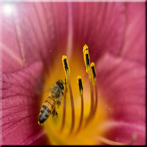 Rikki Knight RK-8intilec-9153 8" X 8" Honey Bee on Pink Flower Macro Close-Up Design Ceramic Art Tile