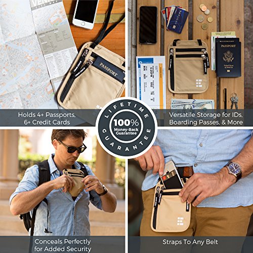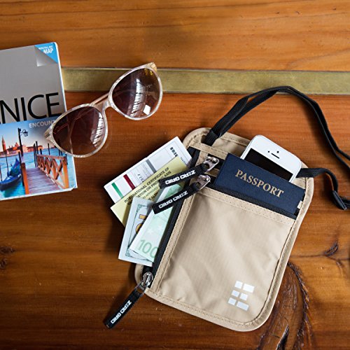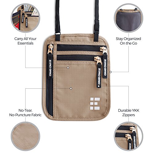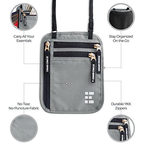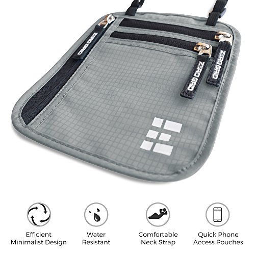 -. Title : Zero Grid Neck Wallet w/RFID Blocking- Concealed Travel Pouch & Passport Holder