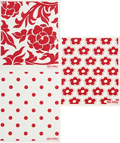 Swedish Dishcloth, Set of 3 RED (RF) Designs