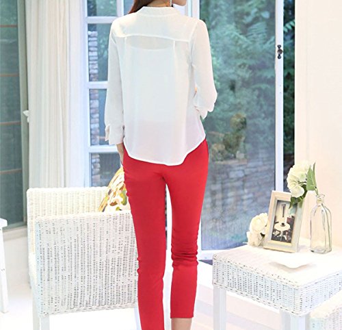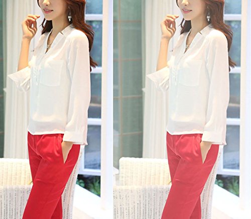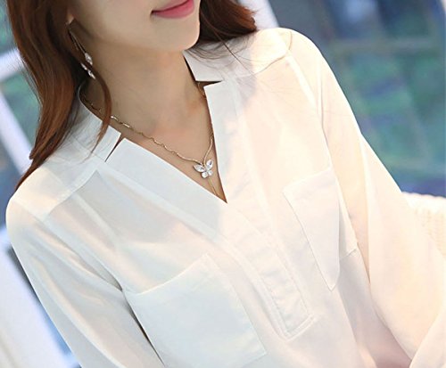-. Title : moli&hani シャツ レディース ブラウス 春 シフォン Vネック 長袖シャツ 白 S M L XL