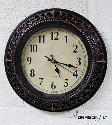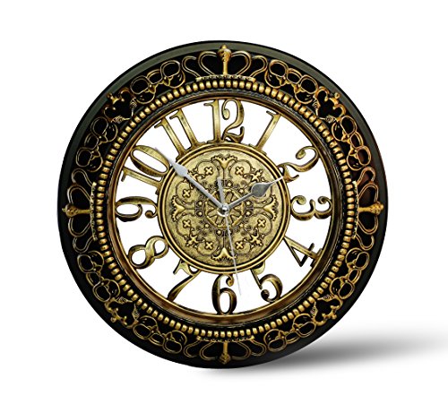 -. Title : 12" Kensington Palace Simulated Metal Design Plastic Wall Clock. ABS Glass Cover, Quartz, Antiquity European Style, Finish