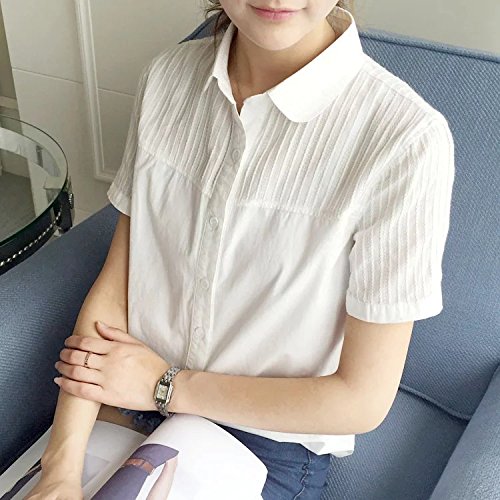 -. Title : (ロンショップ)R.O.N shop レディース コットン ブラウス 白 レース 刺繍 シャツ カジュアル オフィス 通学 通勤 半袖 長袖 S~2XL