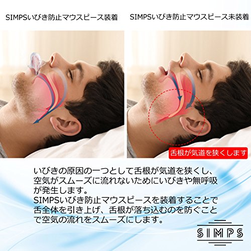 It is SIMPS mouthpiece that has been developed for snoring measures and apnea syndrome prevention. Is secured airway during sleep breathing was made possible a good quality sleep becomes smooth. The main cause of snoring and apnea syndrome may be the airway is narrowed by the tongue is going to Nodooku during sleep. To improve the root cause has been designed to obtain the high-quality sleep. If you snoring and apnea syndrome is a concern, large tonsils, a long soft palate and uvula, the fat in the neck in obesity is recommended for such people to be worried about. Headache and stiff neck can be improved by breathing during sleep can be improved to reduce the fatigue, will lead to improved performance during the day. Type up unnecessary in a one size fits all. You can immediately use. Furthermore, adopting the less soft special medical silicon burden. It was developed in the material to reduce as much as possible the stress of being installed. Our original logo special case with SIMPS anti-snoring mouthpiece of