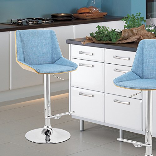 -. Title : Joveco 1-Piece Blue Fabric Modern Swivel Adjustable Barstool