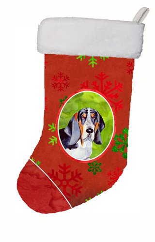 Caroline's Treasures LH9327-CS Basset Hound Red and Green Snowflakes Holiday Christmas Stocking, 11 x 18", Multicolor