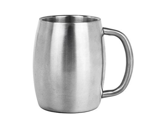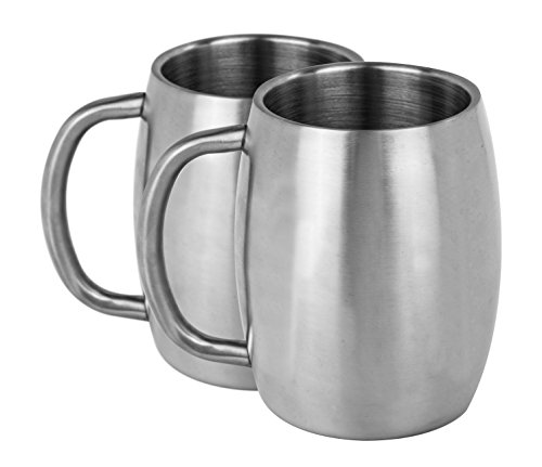 -. Title : Bruntmor, 18/8 Stainless Steel 15 oz Double Wall Insulated Coffee Beer Beverage Mug Set of 2, Brushed Steel