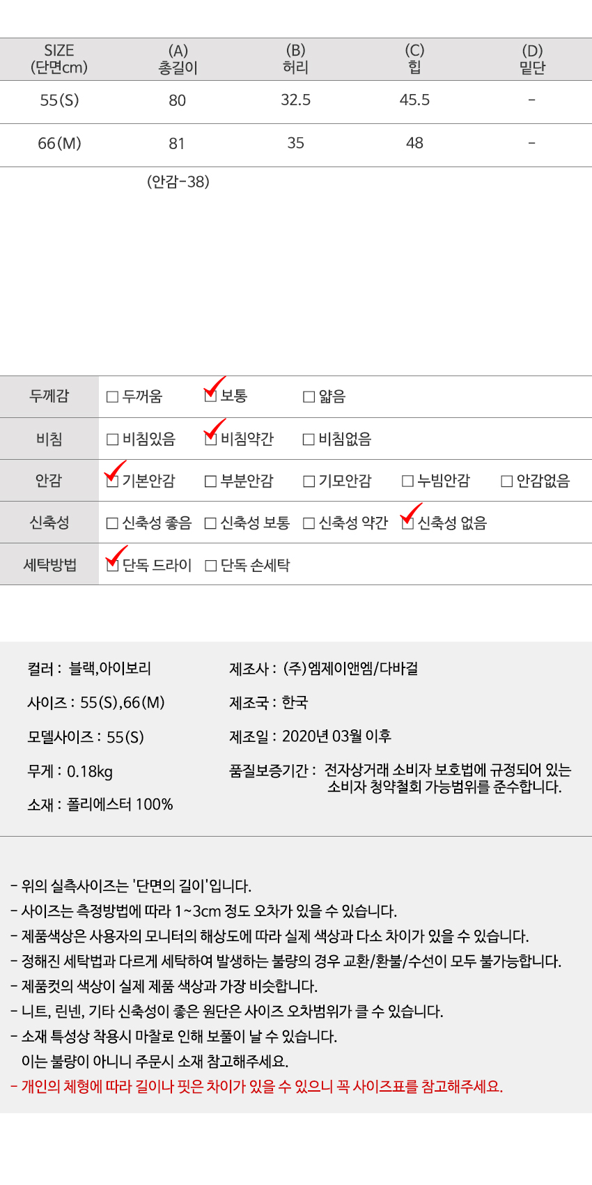 숨겨둔비밀스컷 '걸을때마다 살랑~거림이 느껴지는 미니멀한 H라인 미니스컷과 size tip모델착용 사이즈는 55(S) size 입니다 정확한 사이즈는 하단의 size표를 꼭! 참고해주세요 야외(실내)촬영 특성상 실제 상품과 컬러차이가 있을 수 있습니다. 정확한 컬러는 하단의 디테일컷을 참고해주세요. |
