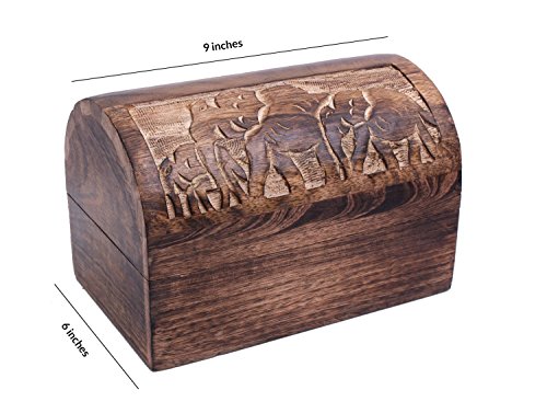 Chest Style Wooden Elephant Keepsake Storage Box Hand Carved with Rustic Finish, 9 x 6 inches
