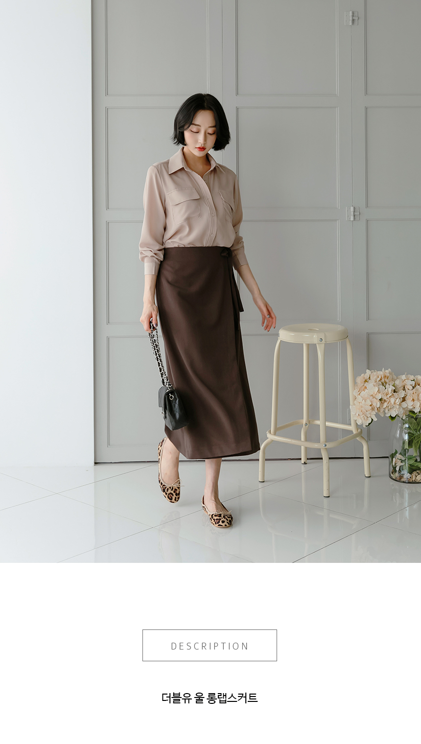 단아한 길이감의 랩 스타일 롱 스커트랍니다.