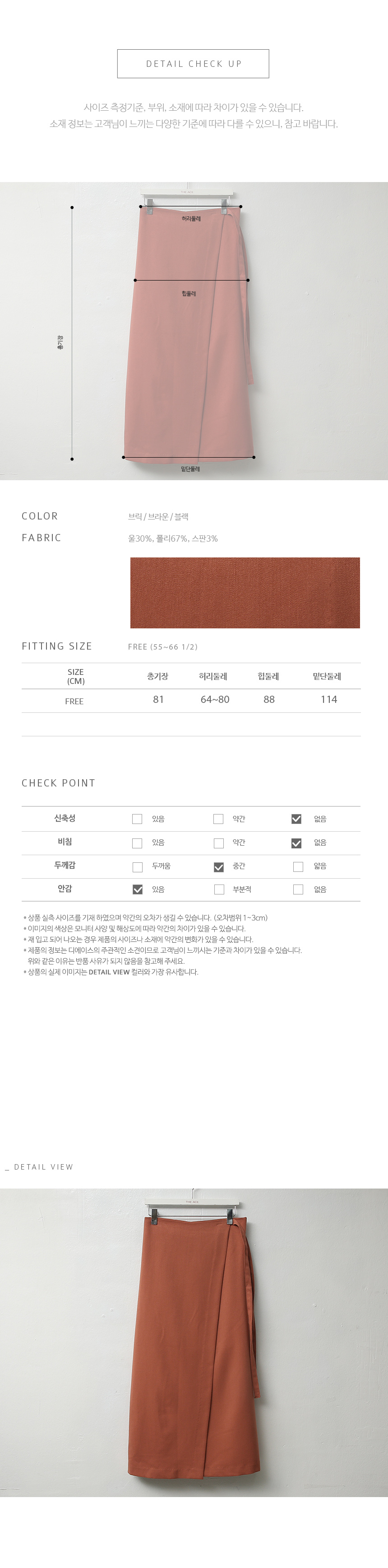 랩스커트처럼 연출하는 스타일로 허리선이 깔끔해