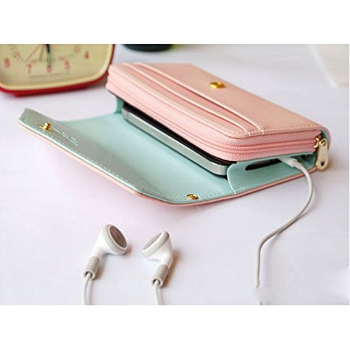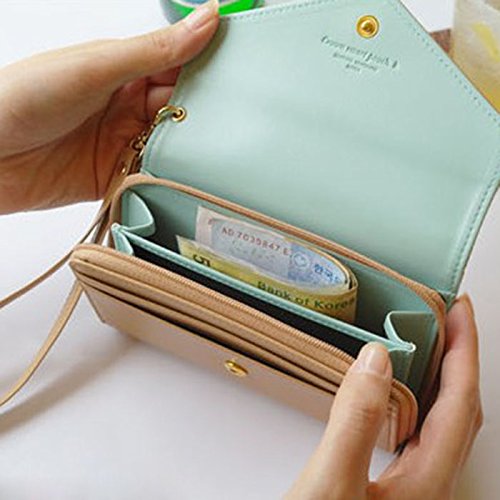 HuaYang Mini ID Credit Card Cash Cellphone Envelope Purse PU Wallet Handbag Pouch(Sky Blue)