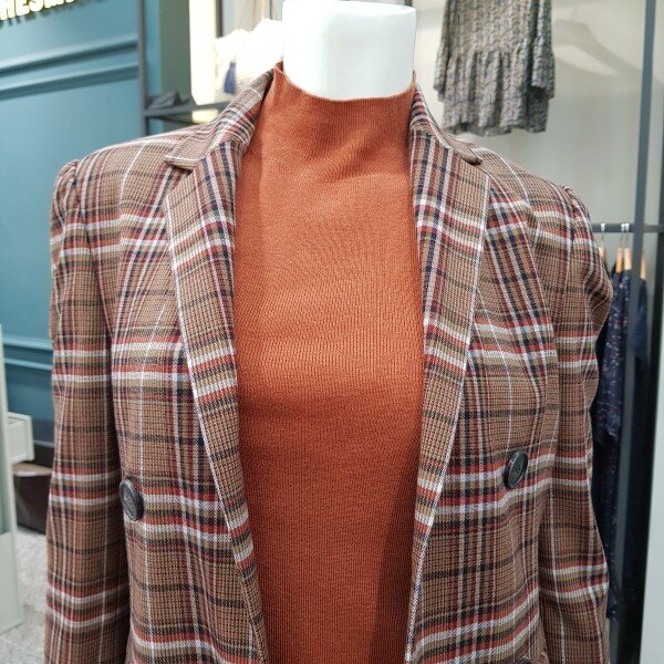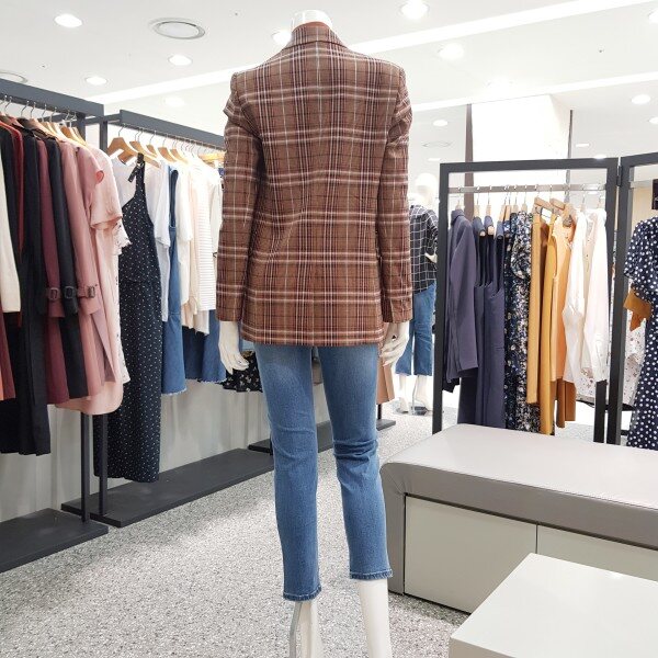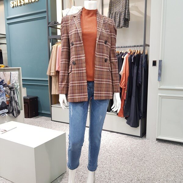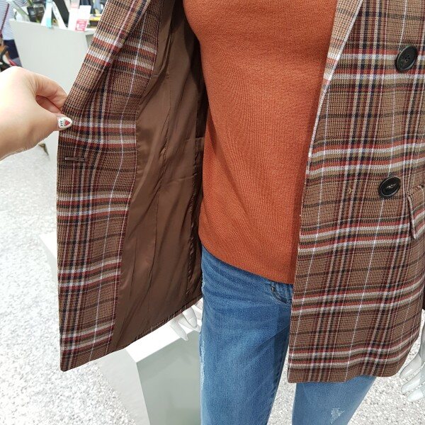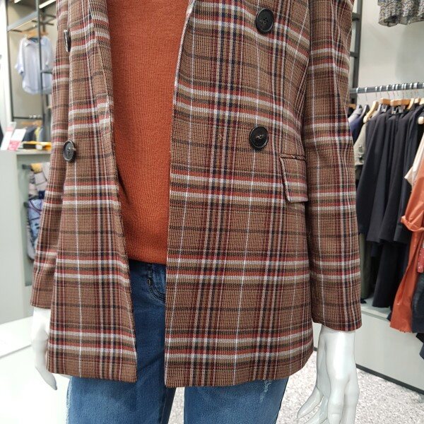 고급스런 레이온 폴리혼방소재의 체크 더블 자켓입니다. 세련된 체크패턴에 빈티지한 칼라가 포인트인 제품~