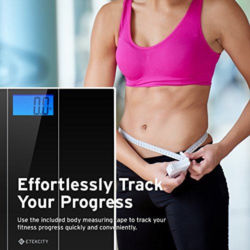 Etekcity Digital Body Weight Bathroom Scale with Body Measuring Tape and Large Easy Read Backlit LCD Display, 400 Pounds