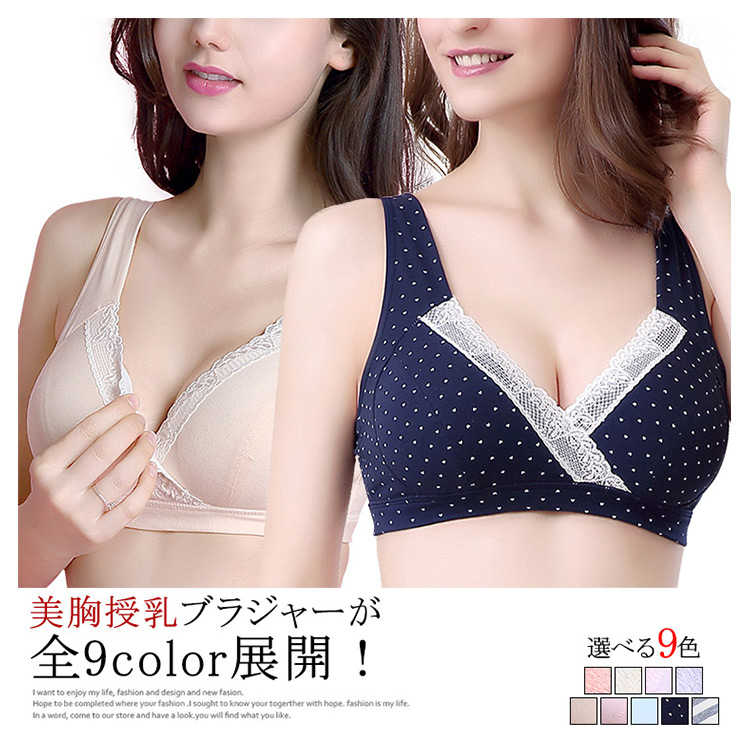 | 美胸授乳ブラジャーが全9color展開!安定感のある幅広ストラップはアジャスターで長さの調整も可能。フィット感抜群のストレッチ素材でバストの をしっかり予防する納得のホールド力。フロントに深めのVネックに華やかなレース使い、カシュクールtypeだからずらすだけで授乳もラクラク。アンダーがしっかりしてるから、安定感もよく、シンプルで楽チン。 | |
