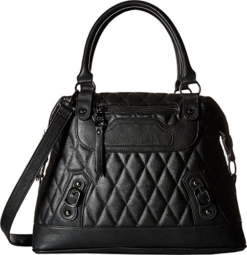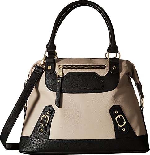 Top zip closure. Dual rolled carry handles. Removable and adjustable crossbody strap. Exterior features zip pocket at front, decorative buckles, brand plaque at back, and polished hardware. Flat base. Lined interior flaunts a back wall zip pocket and two slip pockets. Imported.