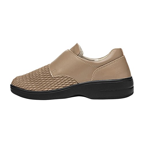 Binding : Apparel Product Description For the ultimate in stretch comfort, try Propet's Olivia. These shoes come with a soft leather and PU upper, a flexible textured vamp, and a wide hook and loop strap that fastens over the instep for adjustability. Its wider base and firm heel stabilizer means sure footed walking all day! Olivia shoes also feature blucher style with padded collar and tongue and, double removable footbed for flexible orthotic adoption and shank-reinforced PU unitsole for traction and durable wear. Material: Leather, Polyurethane. 0