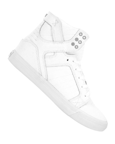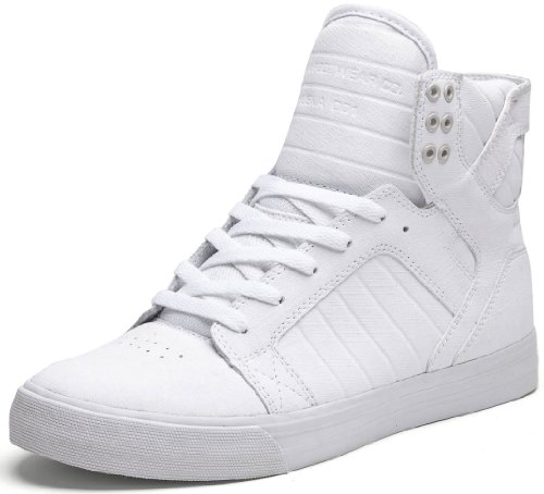 Studio : SUPRA Publisher : SUPRA Binding : Apparel Product Description SUPRA Men's Skytop Sneaker. The SUPRA Skytop Sneaker in White Gunny TUF Leather and abrasion resistant canvas Cushioned ankle collar Cushioned tongue Contrast metal eyelets at ankle cuff Punched eyelets on vamp Tonal flat laces Perforated toe box Rear pull tab Contrast logo plate on pull tab Logo on rear midsole Textured outsole Leather, textile, and man-made materials By SUPRA. 0
