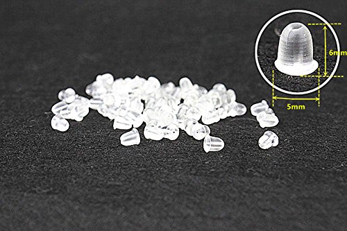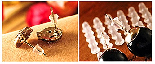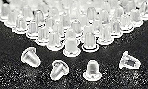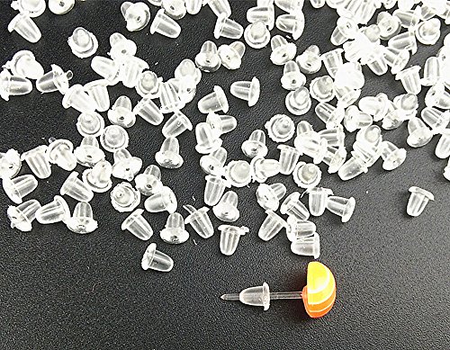 200pcs Bullet-shaped Clear Soft Rubber Stud Earring Backs Earnuts for DIY Jewelry Supplies (Clear White) By Alimitopia