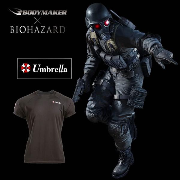 最強格闘スポーツブランド【BODYMAKER】と最怖のホラーゲーム【BIOHAZARD】の天下無双のコラボ企画!バイオハザード世界観をスポーツメーカーのノウハウを詰め込んで具現化したTシャツが新登場!BIOHAZARFD(バイオハザード)の世界観をリアルに具現化し、アクションシーンを想定したウエアを、スポーツブランド「BODY MAKER(ボディメーカー)」がスポーツメーカーのノウハウを詰め込み込んで開発し限定発売! 全ラインナップは、BIOHAZARDシリーズ内組織「S.T.A.R.S.」「BSAA」「Umbrella」の世界観とリンクさせ、特殊部隊としてのイメージを具現化したスポーツインナー、スポーツウエア、メッシュキャップ、バックパック、トレーニンググローブなど全11種を発売! 幅広いラインナップで世界中のBIOHAZARDファンのスポーツシーンにマッチングできるデザインと機能性になっています。