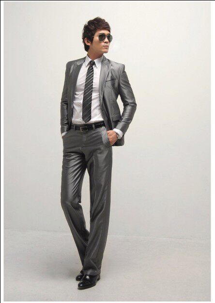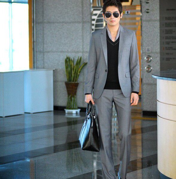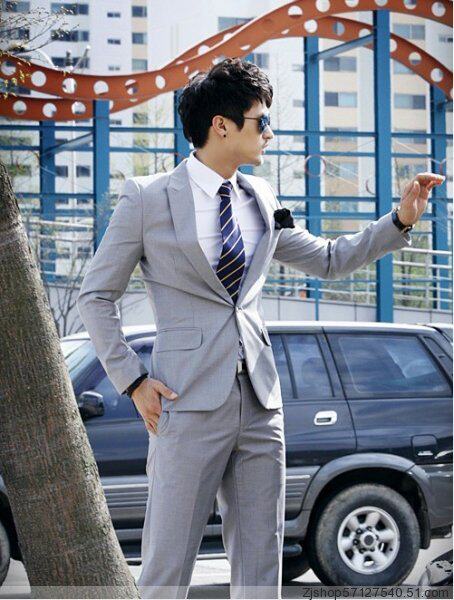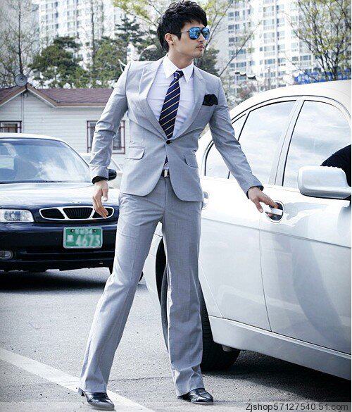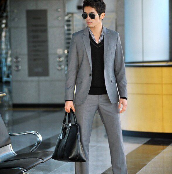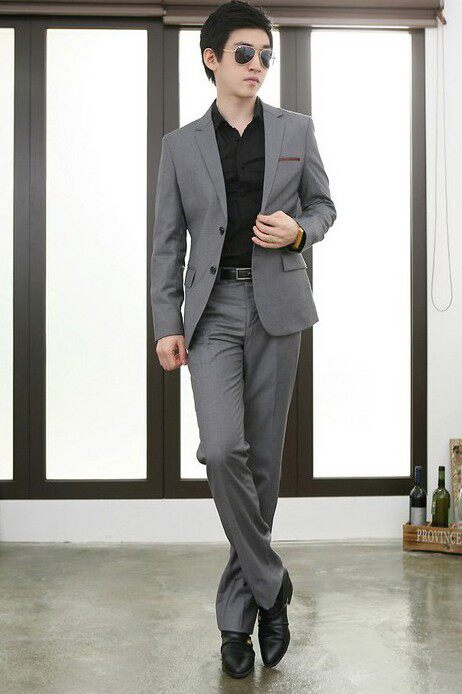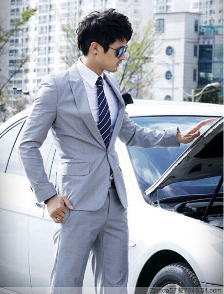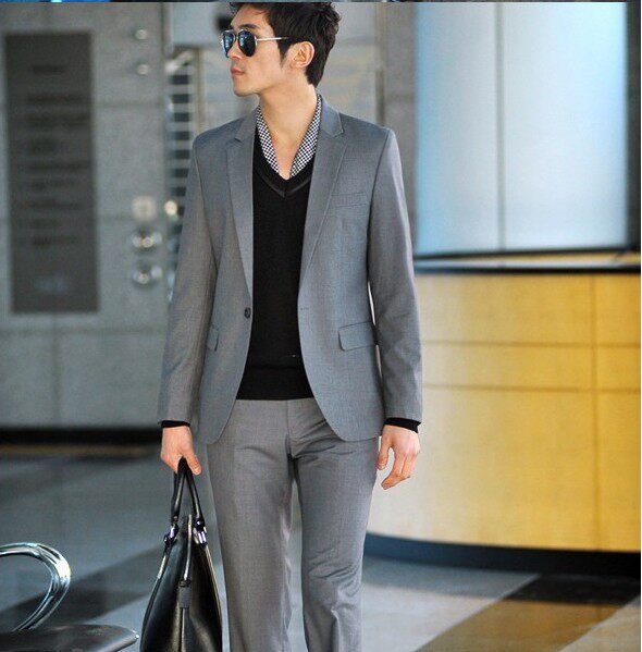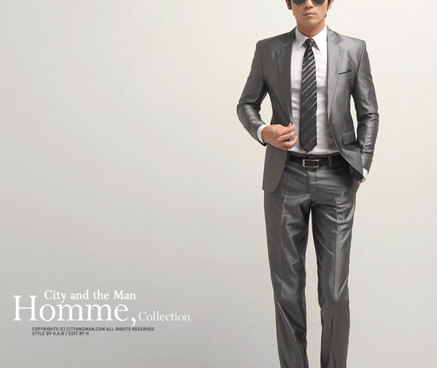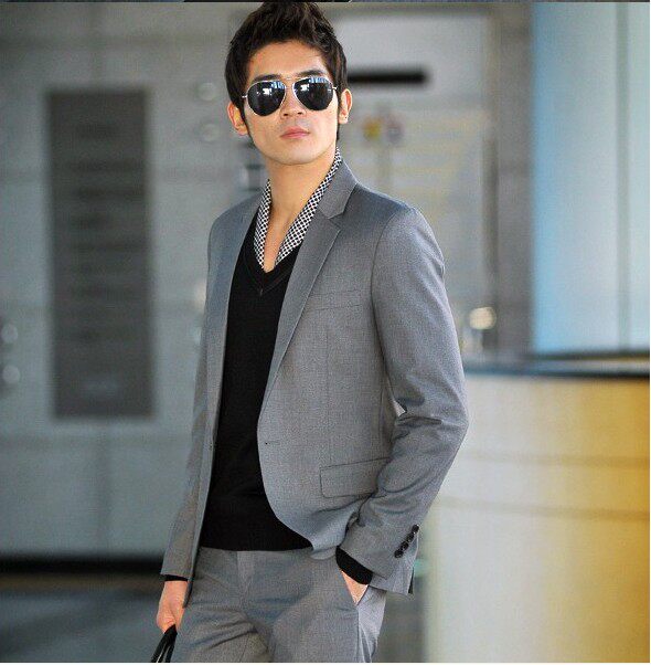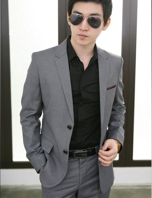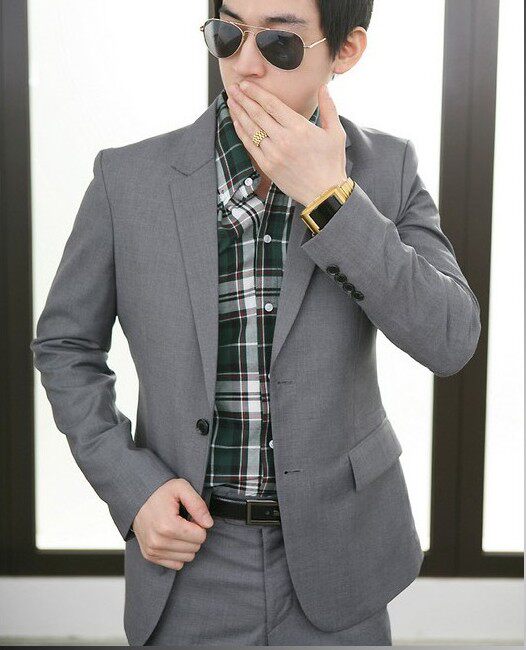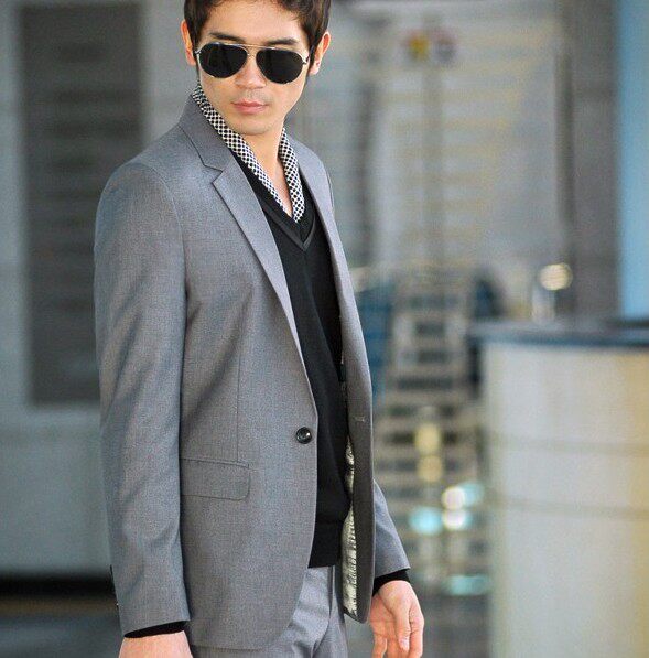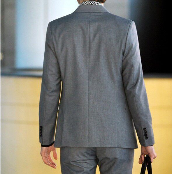 灰色一扣平领