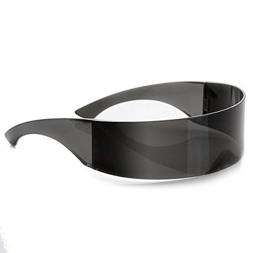 Product Description Futuristic monoblock wrap sunglasses that are sure to stand out on any planet. Features an acetate based frame, monoblock UV protected shield lens and pinned hinges. 0