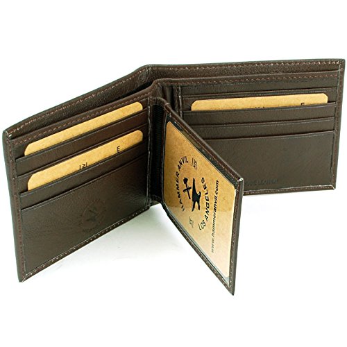 Men's Center Flip Bifold By: Hammer Anvil RFID Protected! Hammer Anvil's Anti-Breach Technology TM will stop anyone from obtaining your information. Wireless readers will not get through our RFID protection.  Product Features: Measures 4.25" x 3.37" x 1" Genuine Leather ID window, Full size bill section 10 card slots and 2 oversized slots