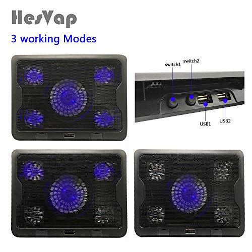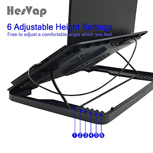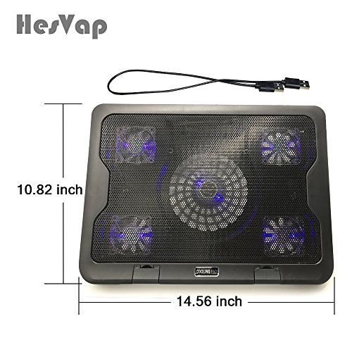 -. Title : HESVAP 12, 14, 15.6, 17 inches Gaming Laptop Cooling Pad Notebook Cooler with 5 Quiet Fans and Adjustable Height Settings