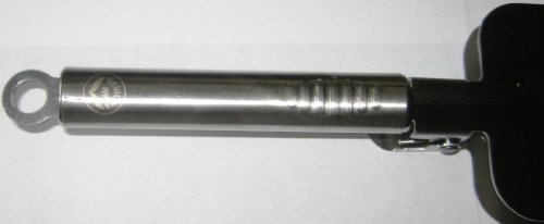 - Crafted from durable, stainless steel and features a classic empire red accented handle