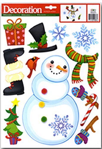 - IMAGINE YOUR CHILD'S FACE when they get to dress their own Snowman inside their own home! LARGE SNOWMAN Window Cling, Sheet Is 16.5 Inches high x 11.50 Inches wide, Featuring 1 Large Snowman, Top Hat, XMas Stockings, Scarf, Mits, Christmas Gifts, Red Cardinal & 5 Snowflakes. They can change their Snowman's accessories around on a daily basis! 12 Clings in All.