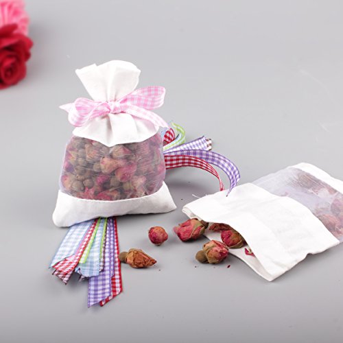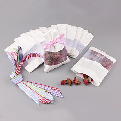 Ezeso 24pcs Sachet Empty Bags White Drawstring Gauze Cotton-ramie Sacks for Lavender, Spice and Herbs