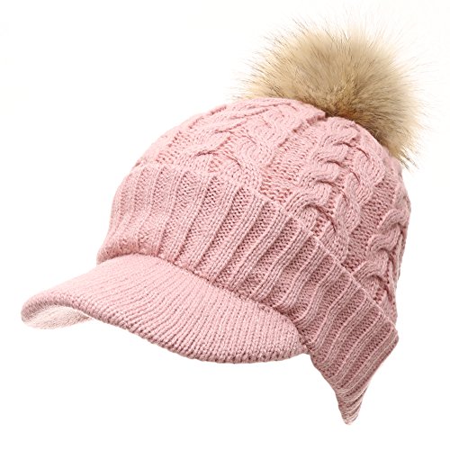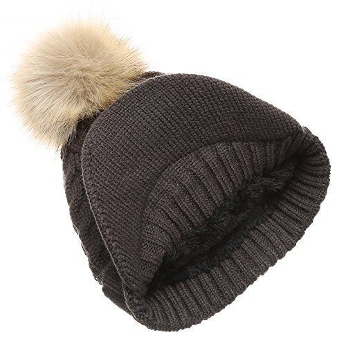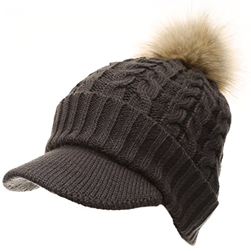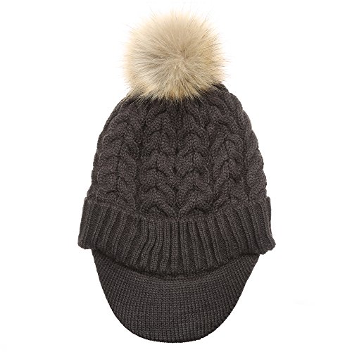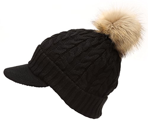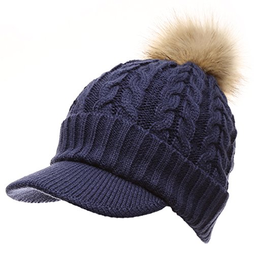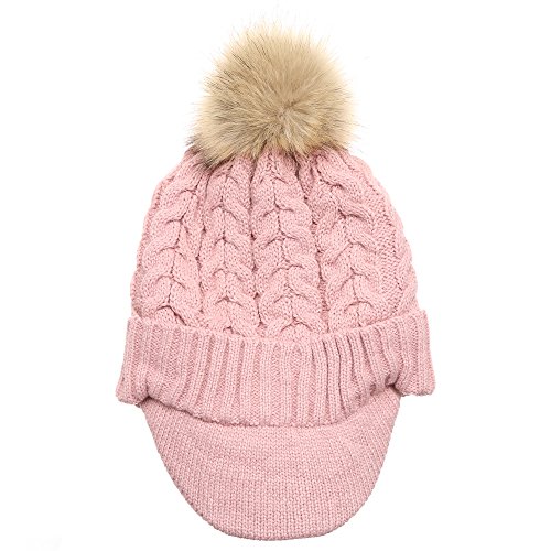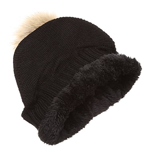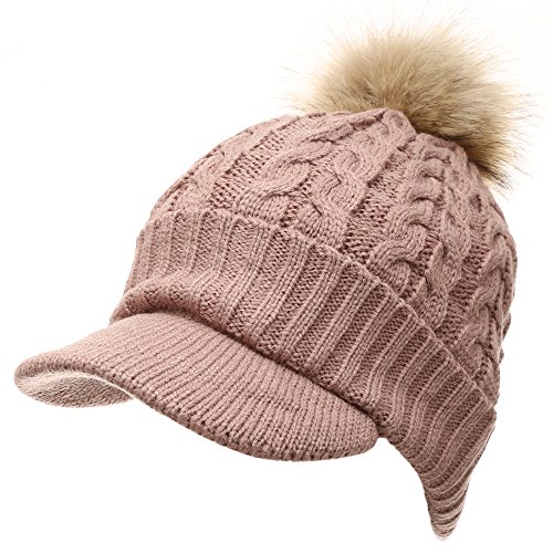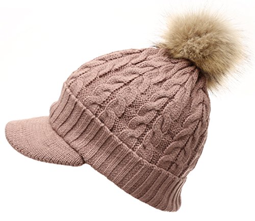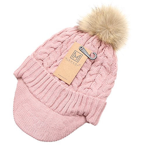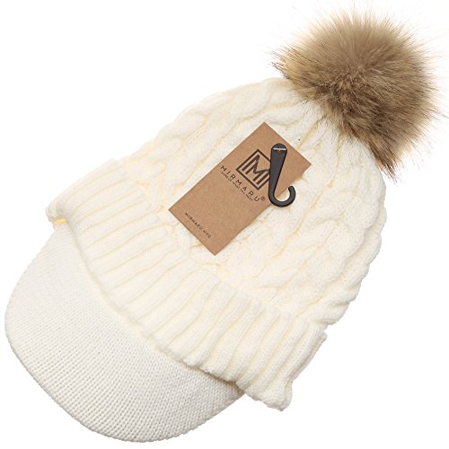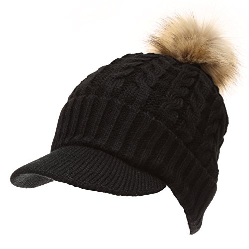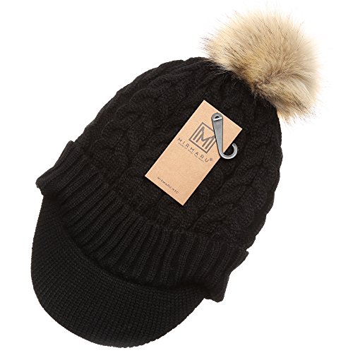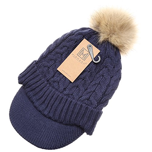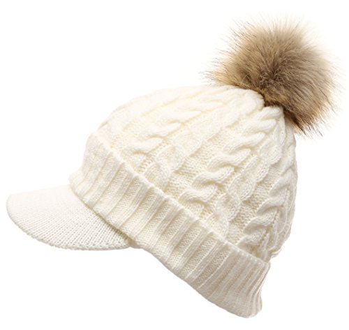 | (MIRMARU)/Accessories/Hats/DIRECT FROM USA/MIRMARU Women's Winter Warm Cable Knitted Visor Brim Pom Pom Beanie Hat With Soft Plush Lining. |