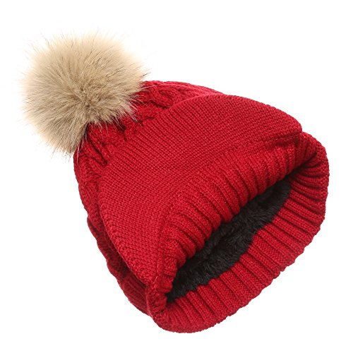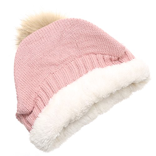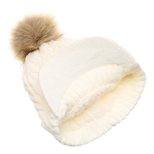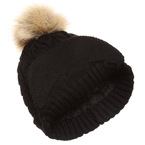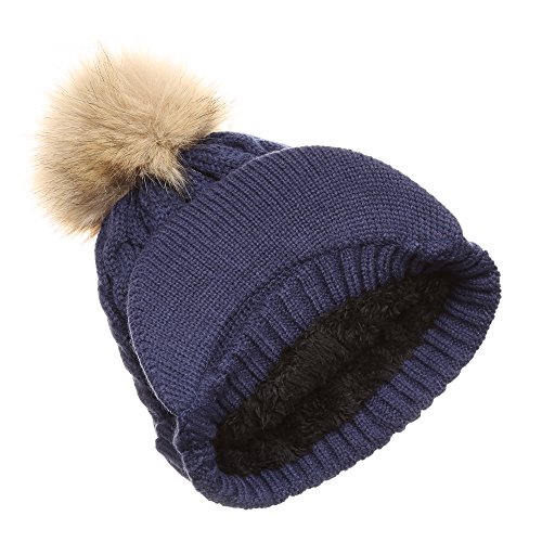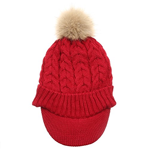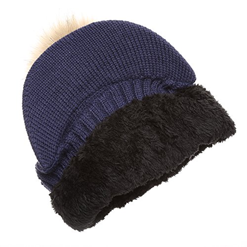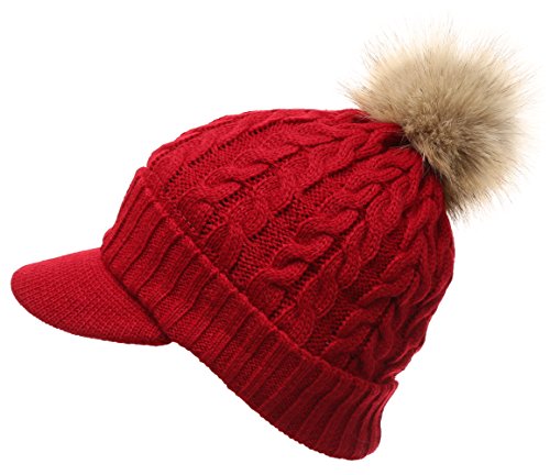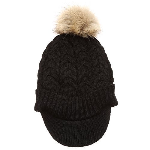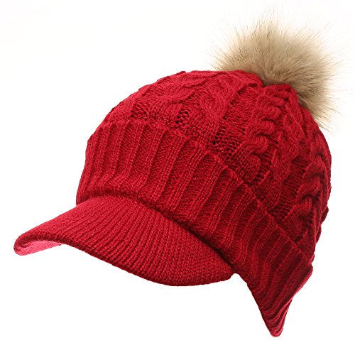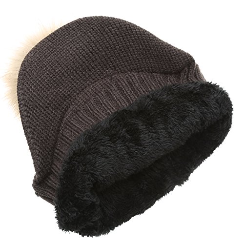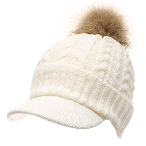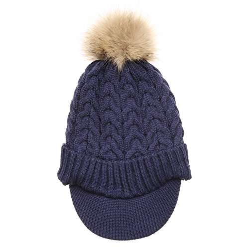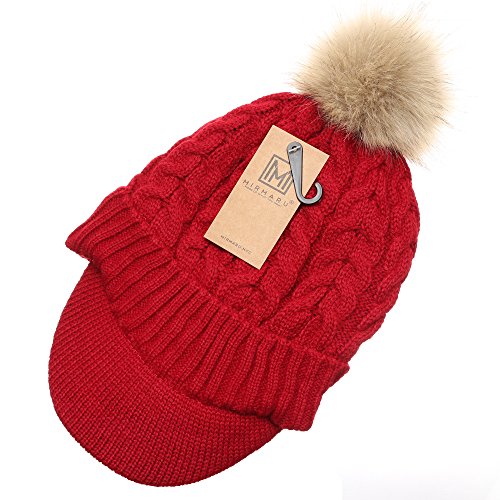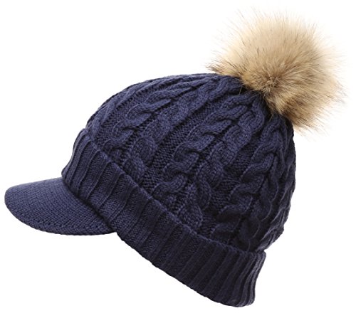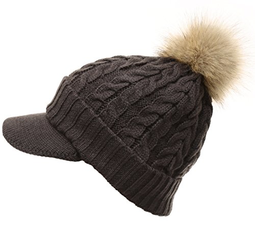 | (MIRMARU)/Accessories/Hats/DIRECT FROM USA/MIRMARU Women's Winter Warm Cable Knitted Visor Brim Pom Pom Beanie Hat With Soft Plush Lining. |