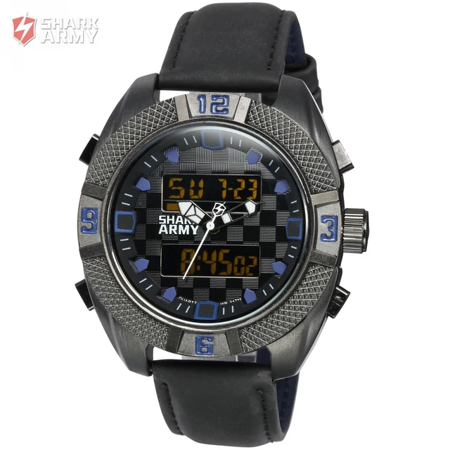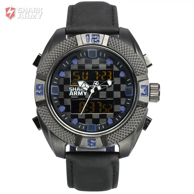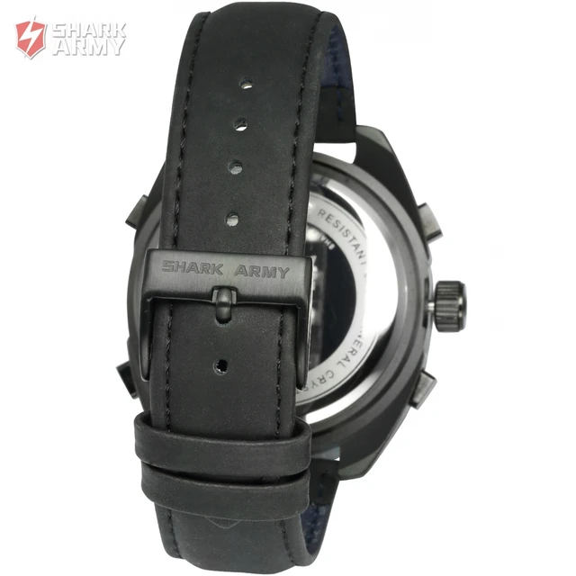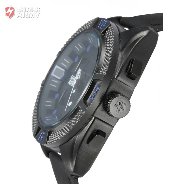 | [해외] Shark army 시계 남자 석영 시계 방수 스포츠 선물 경보 블랙 크로노 그래프 알람 듀얼 타임 존/saw171 |