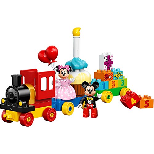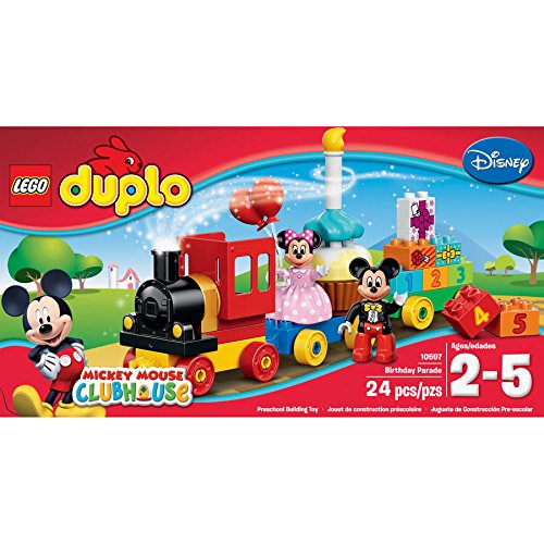-. Binding : Toy -. Brand : L.E.G.O -. Color : Multicolor -. EAN : 0783120060115 -. Feature : Includes 2 L.E.G.O DUPLO figures: Mickey Mouse and Minnie Mouse Features a train and a buildable birthday cake Accessories include balloons, a candle and 3 gift-decorated bricks as story starters Number bricks from 1 to 5 help children learn their age and promote early number recognition / Number bricks from 1 to 5 help children learn their age and promote early number recognition Figures and accessories fire the imagination and encourage role play Help your child master basic building skills with this simple model / Throw a party with Disney's Mickey and Minnie Build the cake and sing Happy Birthday Fill the train with birthday fun and enjoy the parade L.E.G.O DUPLO products are specially designed to be fun and easy for little hands Train measures over 7" (18cm) high, 13" (34cm) long and 2" (6cm) wide -. IsAdultProduct : 0 -. Label : L.E.G.O -. Manufacturer : L.E.G.O -. PackageQuantity : 1 -. ProductGroup : Toy -. ProductTypeName : TOYS_AND_GAMES -. Publisher : L.E.G.O -. Studio : L.E.G.O -. Title : L.E.G.O Duplo Disney Mickey & Minnie Birthday Parade, Multicolor -. UPC : 783120060115