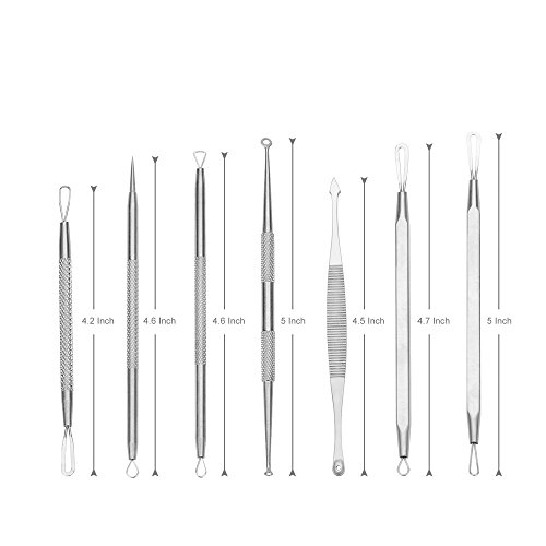 Blackhead Extractor Kit includes 7 professional quality tools made of Stainless Steel. The professional electroplated needle won't cause sensitivity issues and works on all types of skin.