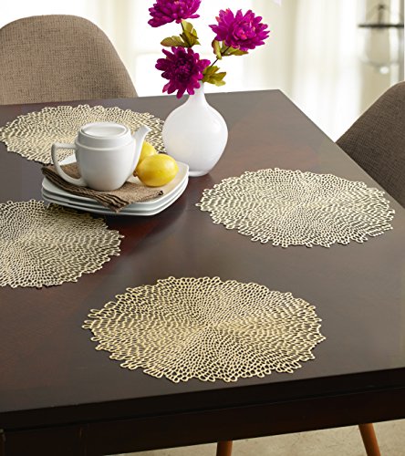 (Benson Mills)/Kitchen Dining/Kitchen Table Linens/DIRECT FROM USA/Benson Mills Blossom Pressed Vinyl Placemat, (Set of 4), 15.5" , Gold