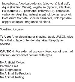 Aloe Vera 98% Gel-Soothing Moisture 8 oz GelDescriptionJSN Certified Organic Aloe Vera Oil delivers natural, instant dry skin relief. Known for its healing properties, Aloe Vera Oil has been used for generations to help soothe discomforts of sunburn and minor wounds.