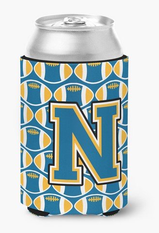 Caroline's Treasures CJ1077-NCC Letter N Football Blue and Gold Can or Bottle Hugger, Multicolor