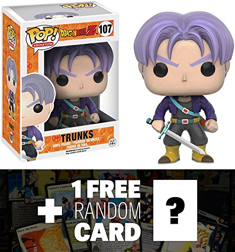 -. Binding : Toy -. Brand : DragonBall -. EAN : 9899999489443 -. Feature : ONE FREE official DragonBall trading card is bundled with this item. The card is randomly inserted (may be inside the product packaging), and there's a chance to receive a valuable rare card! If you return this item, the trading card must be returned. / POP! is a crossover vinyl figure series by Funko and other famous franchises such as Disney, Pixar, DC Comics, Marvel Comics, Star Wars, Simpsons, South Park, Uglydoll, etc. / Each figure is about ~3" to ~5" tall and crafted in a Japanese anime/manga super-deformed style (NOTE: due to the unique design of each character, the actual size of the figures may be smaller or bigger than stated.). / The POP! x DragonBall Z series features characters from the hit Japanese Anime Dragon Ball Z, which follows the adventures of Goku who, along with his companions, defends the Earth against an assortment of villains. / Perfect collectible items for DragonBall fans. For ages 14+. -. Label : Funko -. Manufacturer : Funko -. Model : BCC94F4P -. MPN : BCC94F4P -. PartNumber : BCC94F4P -. ProductGroup : Toy -. ProductTypeName : TOYS_AND_GAMES -. Publisher : Funko -. Studio : Funko -. Title : Trunks: Funko POP! x DragonBall Z Vinyl Figure + 1 FREE Official DragonBall Trading Card Bundle (074258)