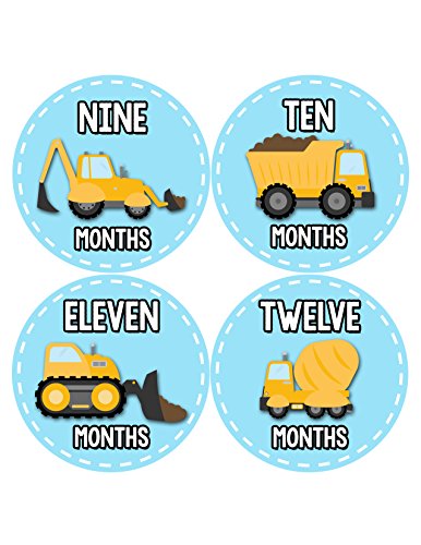 -. Binding : Baby Product -. Brand : Months In Motion -. Department : Baby-girls -. EAN : 0760194480896 -. Feature : Just peel, stick, and take a photo to document your baby's first year! / Makes a wonderful shower gift! / The perfect baby photo prop! / P.R.Inted on white matte sticker so no glare in photos / Includes 12 precut stickers that are approximately 3.93 inch diameter -. IsAdultProduct : 0 -. Label : Months In Motion -. LegalDisclaimer : Stickers are to be used under adult supervision only. Do not leave stickers on baby unattended. -. Manufacturer : Months In Motion -. Model : 1062 -. MPN : 1072 -. PackageQuantity : 12 -. PartNumber : 1072 -. ProductGroup : Baby Product -. ProductTypeName : BABY_PRODUCT -. Publisher : Months In Motion -. Studio : Months In Motion -. Title : Months In Motion - Baby Month Stickers - Monthly Baby Sticker for Boys - Construction Trucks (1088) -. UPC : 760194480896