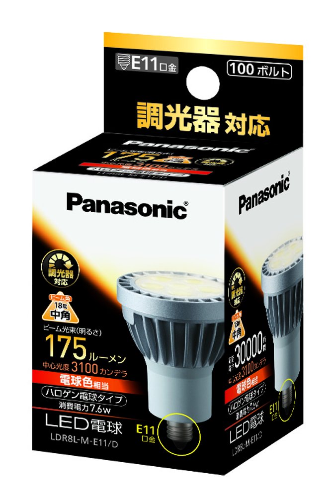 ● Medium angle type (beam angle 18 degrees) · Dimmer compatible ● Power consumption 7.6 W ● Long life of about 30000 hours ● Body height: 69.5 mm ● Body width: 50 mm ● Body depth: 50 mm ● Body weight: 87 g
