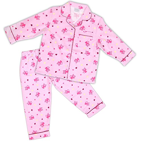 -. Feature : Hochwertiger und kuscheliger Unisex-Flanell-Schlafanzug / Pyjama / Hausanzug in weicher Qualität für Jungen und Mädchen aus 100% Baumwolle der Marke Moonline nightwear. / Flanell-Webware in weicher Qualität, beidseitig angeraut. Mit tollem Allover-Druck in Grundfarbe rauchblau oder rosa. Single-Jersey aus 100% Baumwolle. / Oberteil: langarm, durchgehend geknöpft, mit Kragen und Brusttasche, Ärmelöffnung mit Pipings; Hose: lang, Beinöffnung mit Pipings. / Knaben Style: Grundfarbe rauchblau und Allover-Druck "Hündchen" in blau/rot/weiß. / Mädchen Style: Grundfarbe rosa und Allover-Druck "Kätzchen" in pink/gelb/bordeaux.