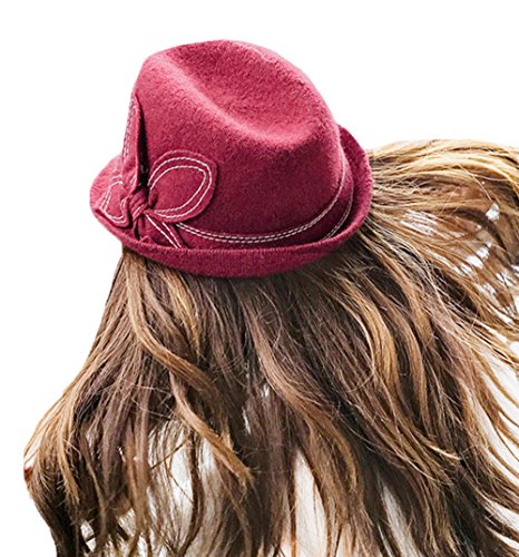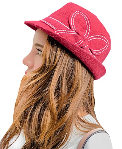 (ZEHAT)/Accessories/Hats/DIRECT FROM USA/ZEHAT Burgundy Women Flower Wool Bowler Hat Outdoor Fall Spring Winter Caps Warm Headwrap Hot Style