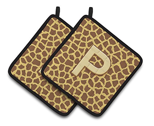 Caroline's Treasures Monogram Initial P Giraffe Pair of Pot Holders CJ1025-PPTHD, 7.5HX7.5W, Multicolor