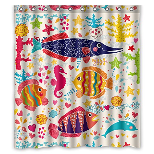 GCKG Unique Colorful Cartoon Underwater Sealife Shell Fish Shower Curtain 66" x 72" Waterproof Polyester Fabric Shower Curtain