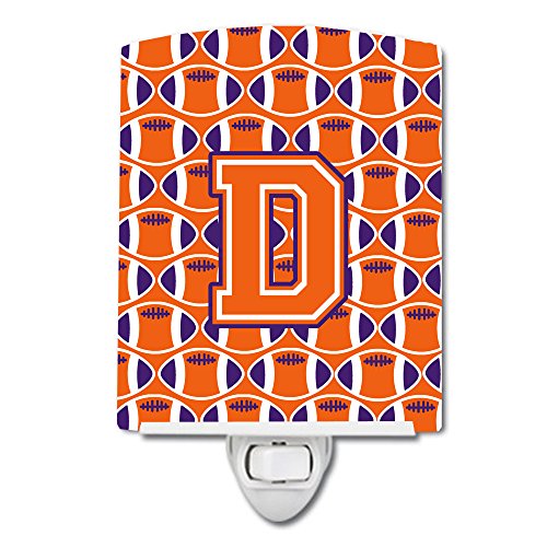Caroline's Treasures Letter D Football Orange, White and Regalia Ceramic Night Light, 6 x 4", Multicolor