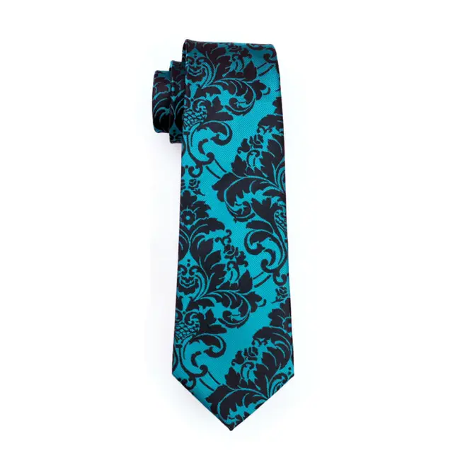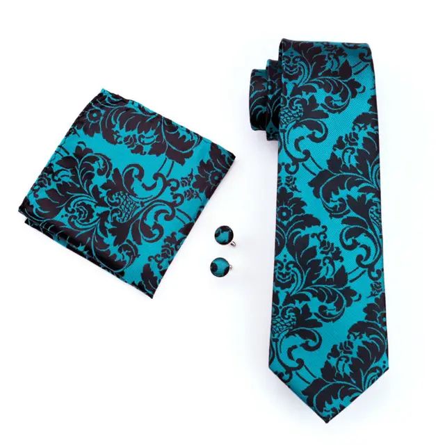 LS-769 넥타이 100% 실크 Darkcyan 꽃 자카드 짠 Gravata 넥타이 손수건 커프스 세트 정장 웨딩 비즈니스 파티