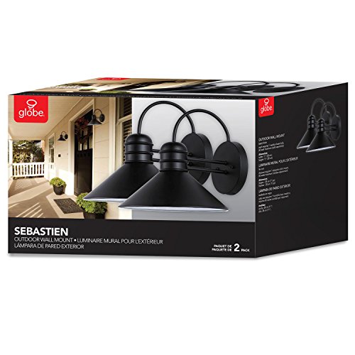 Globe Electric Sebastien 1-Light Outdoor Wall Sconce, Black Finish, 2-Pack, 44165