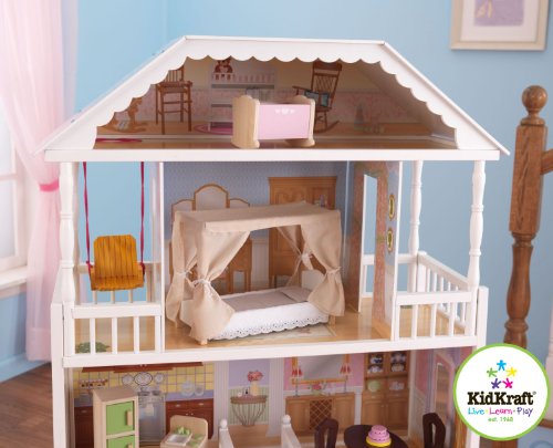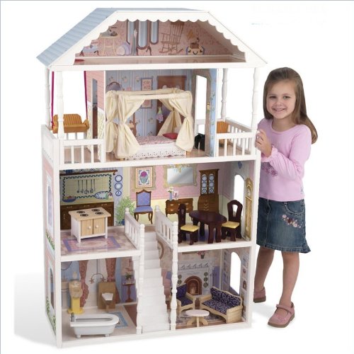 Amazon.com Review The Savannah Dollhouse is an elegant, large six-room mansion designed for children ages three and up. The dollhouse is decorated like a true southern mansion and is fully furnished, with beautiful, handcrafted wood furniture. Your daughter will enjoy playing house with her dolls in this fully furnished four-story dollhouse.  | Savannah Dollhouse Ages: 3