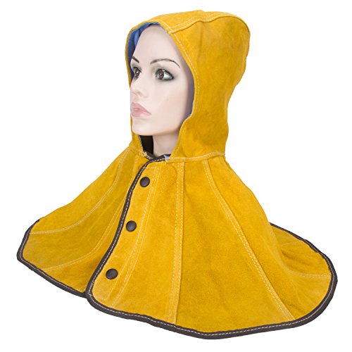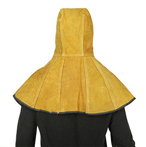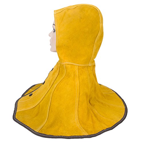 Joyutoy Yellow Welding Hood Cowhide Split Leather Hood with Neck Shoulder Drape
